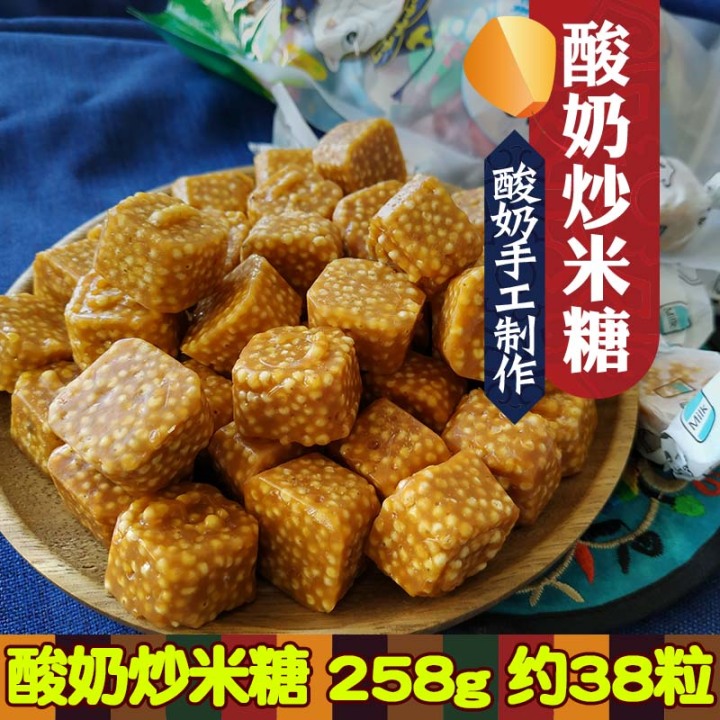 在内蒙古,酸奶和炒米都是常吃的食品,但是将二者结合起来,再加上纯牛奶熬制的黄油,制作成炒米糖,那更是别有一番滋味,酸甜醇香,回味无穷。各大内蒙特产店都可以买到、